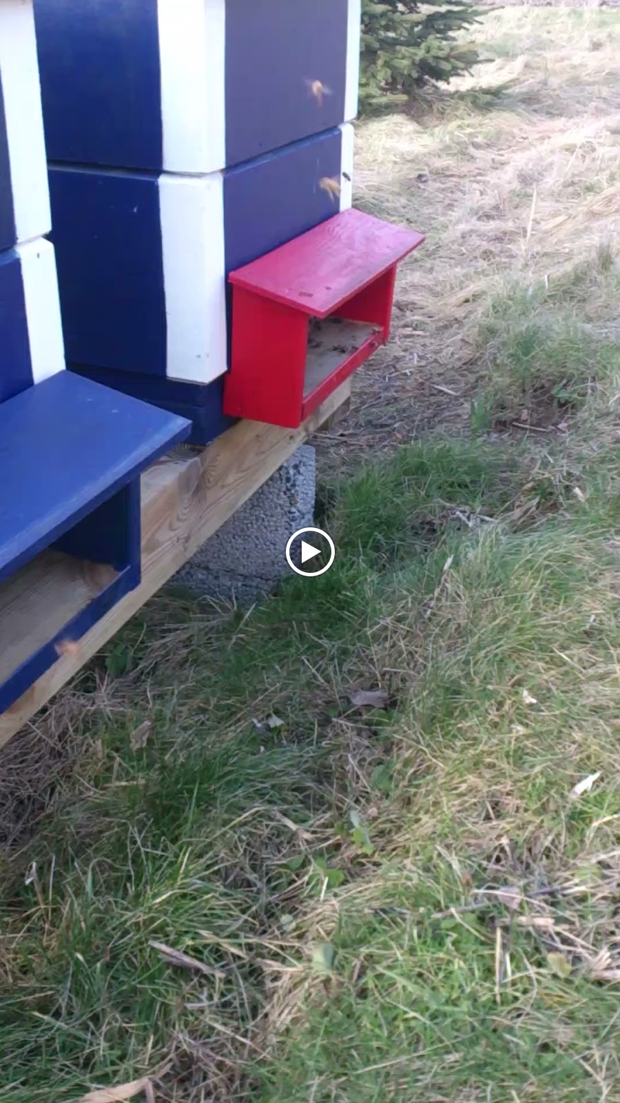 Idag var det sol vindstilla och ca 10 grader varmt. Och då passade jag på att lyfta bort den lådan som bina sitter i och ta bort tomlådan som jag haft under i vinter. Och så rengöra bottnen från döda bin samt flamma med gasolbrännare så att den blev ren och fin och eventuella bakterier från "nosema" som är en bisjukdom dör. Till min stora glädje så lever alla samhälle och lådorna verkade rätt så tunga vilket tyder på att dom har foder kvar ännu. Jag lyfte inte på locket och tittade på bina. Vill ju störa så lite som möjligt. Men en del var ute och flög när jag var klar.