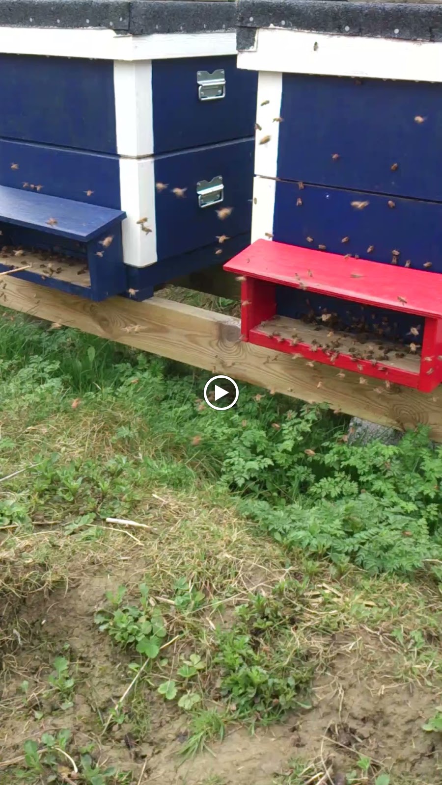Idag har det varit 13 grader varmt och soligt och ingen vind. Lite skillnad mot igår när det var snöblandat regn och blåst. Men idag passade jag på att sätta till ett yngel rum till. Dom har ju haft ett yngel rum i vinter. Nu satte jag till ett till med ramar. Jag hade ju utbyggda ramar sen förra året så det blev ungefär hälften av varje. Jag satte det nya yngel rummet underst. Vet inte om det är rätt men det känns mest logiskt. Det ser bra ut i alla samhällena. Två stycken riktigt starka. Och dom andra ser ut som på bilden.
